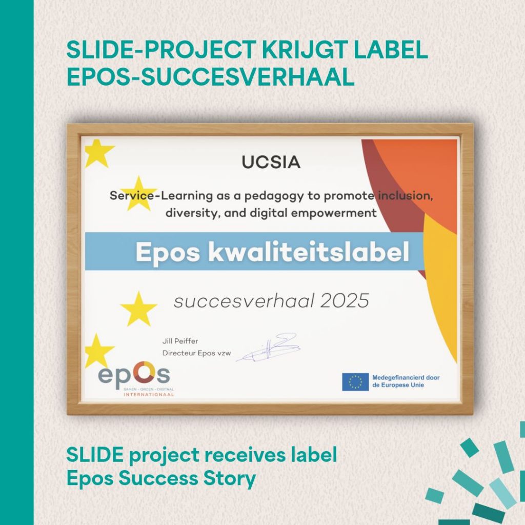 Every year, the Flemish National Agency, Epos vzw, awards a certificate of ‘Epos Success Story’ to Erasmus+ projects with an exceptional evaluation score above 90%. We are pleased to announce that our SLIDE project received this quality label, a wonderful recognition of our 3-year journey!